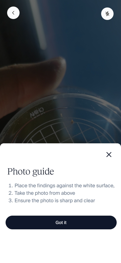 Les spécialistes analyseront la photo et détermineront si d’autres actions sont nécessaires. Le cas échéant, ils vous enverront des instructions complémentaires ou une nouvelle notification via l’application.