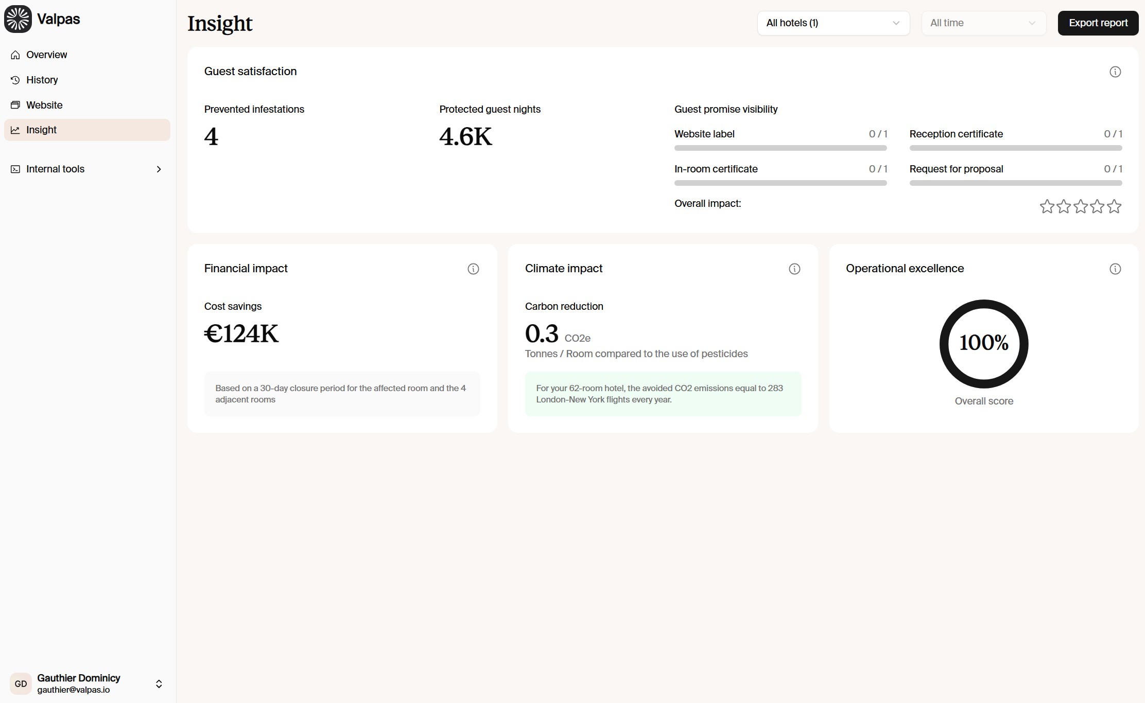 Valpas vous aide à réduire les coûts, diminuer votre empreinte carbone et protéger la réputation de votre hôtel.